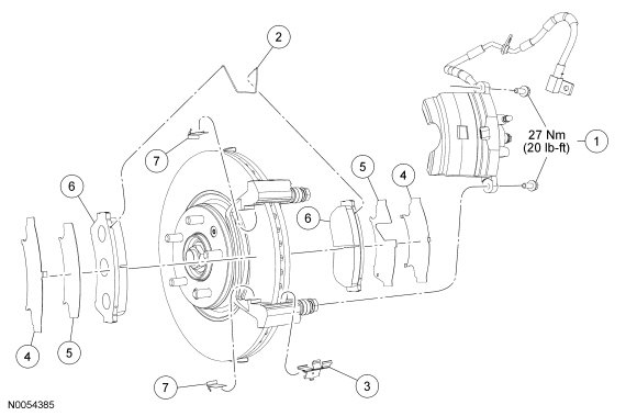 NOTICE: Do not allow the brake caliper to hang from the brake hose or damage to the hose can occur.