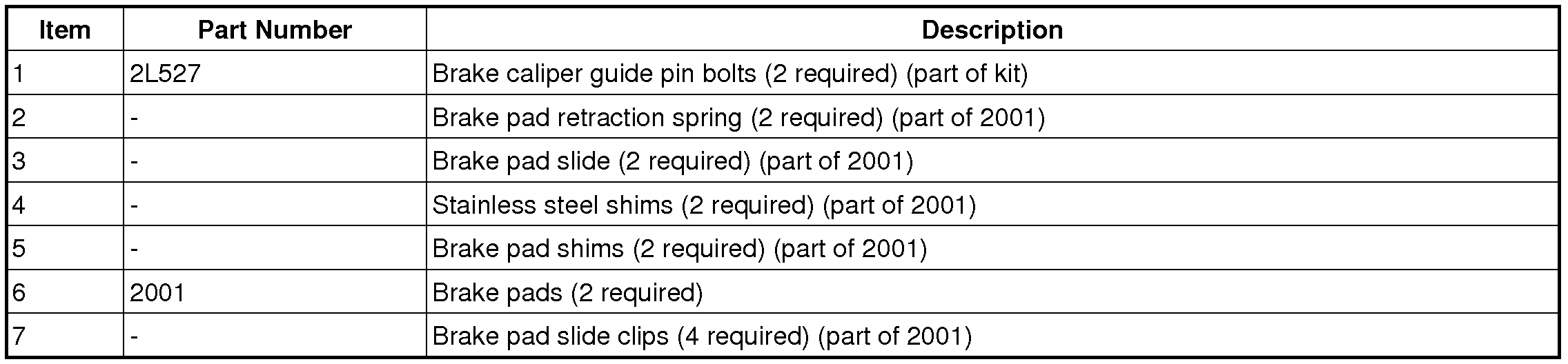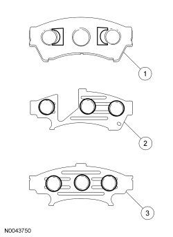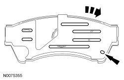 4. Apply the black grease (6E1-2L064-AA) that is supplied to the pad backing plate and shims in the areas indicated.