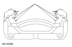 5. Apply the white grease (6E1-2L064-BA) that is supplied to the brake pad retainer clips as indicated.