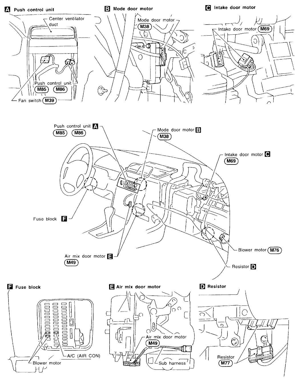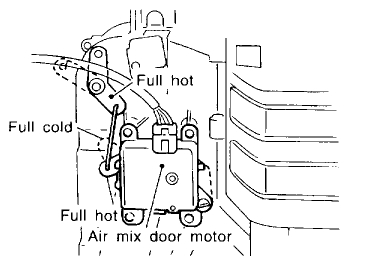 Okay, that would be a blend door actuator issue. The air mix actuator is mounted on the bottom of the HVAC case to the right side of the foot well (item E in the second picture) and uses a short rod to connect to a plastic lever that moves the actual door. To see if the actuator or the lever is the problem you can watch the unit move (or not if it has failed) when you select hot/cold temperatures. If it does not move or if the plastic is broken or the transfer rod has failed it should be easy to see it. The plastic lever tends to crack and the shaft does not move when the actuator moves.