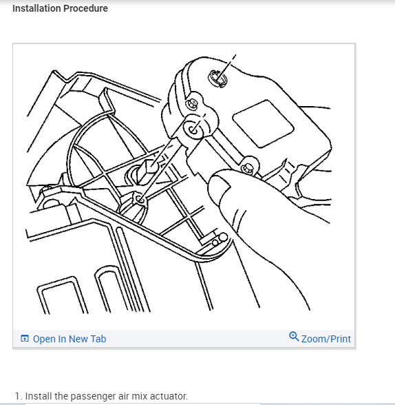 I attached the directions for replacing the actuator below. What I suggest is to remove it and while it is still connected, see if it responds when you change the temperature request on the passenger side. If it doesn't, it's either bad or there is no power to it. You can check for power using a test light.