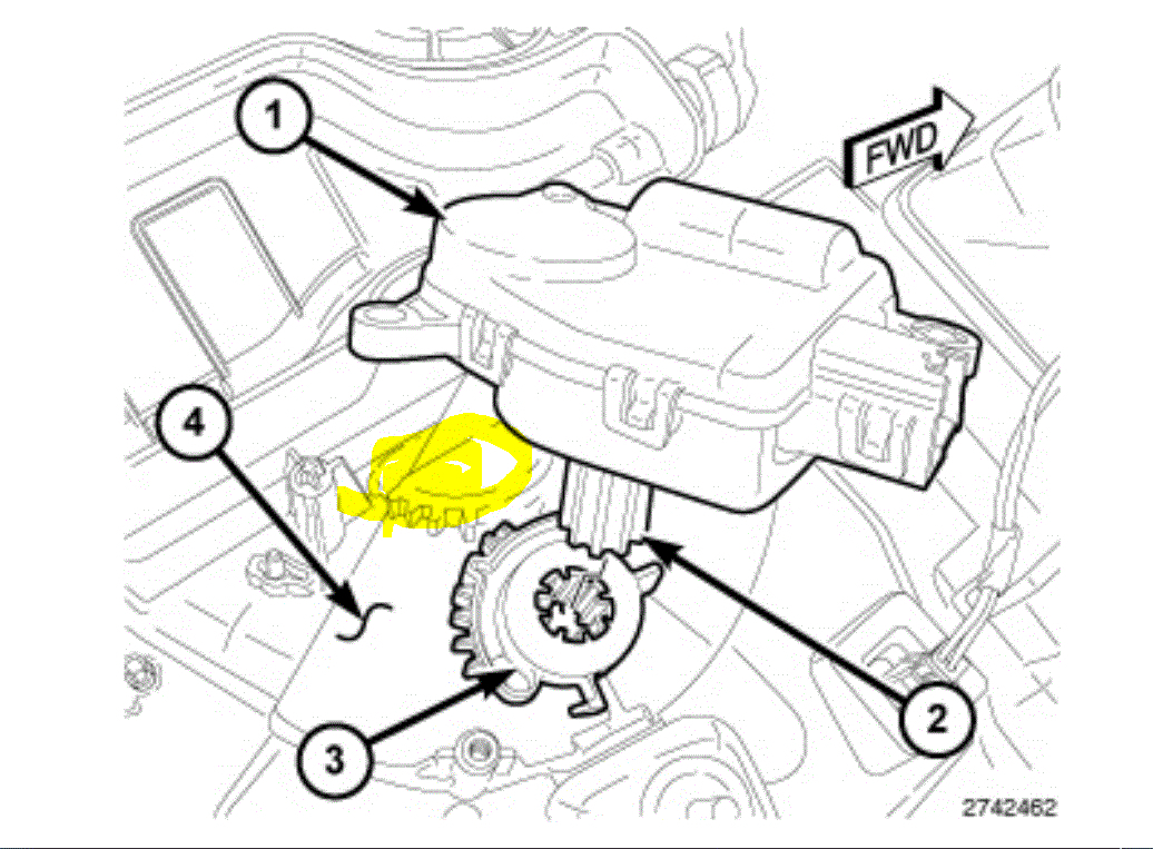 Only my drivers side heat was working, the rest of the car blew cold air. I took apart the glove box and saw that the blend door actuator gear was shattered so I replaced that as well as the actuator. Now my issue is the gear on top won't stay in the position it needs to to blow hot air, so when I want got air I need to manually move the gear to backwards so the hot air will come through but it always eventually defaults back to the same position where it blows out cold. Picture attached.