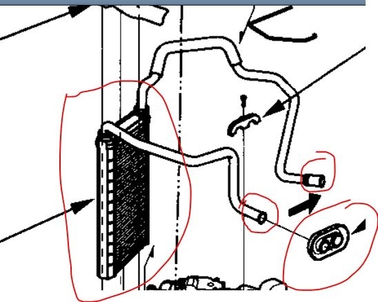 Once coolant is drained in the radiator (about half way down), remove the hoses. At that point, take your garden hose and spray water through one of the two steel lines. Water will come out the other steel hose. Do this until the water is clear.