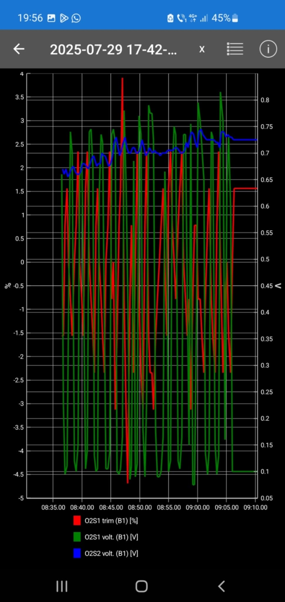After further investigation, O2 pre cat and post cat sensor was reading correct voltages, I then wanted to check the MAF sensor since it is a common suspect, but my car only has an intake temperature sensor and a map sensor. Cleaned the Intake sensor, and was reading correct air temp. I have then checked my values during load with an OBD2, and the thing that stood out was the air fuel ratio, climbing from a steady 14.6 into the 29's, Map sensor also reading questionable readings. Suspecting different things firstly a bad MAP sensor/o2 sensor/ catalytic converter/ air inlet temp sensor.