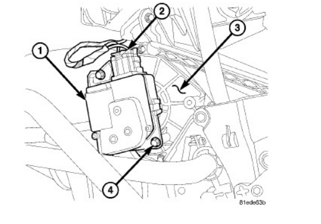 3. Remove the two screws (4) that secure the blend door actuator (1) to the driver side of the HVAC air distribution housing (3).