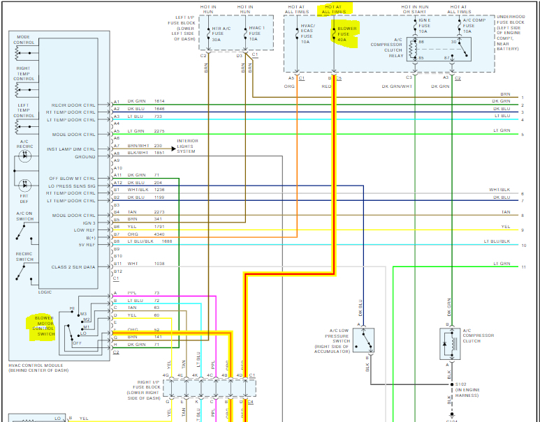 Okay. I need you to start by confirming there is power to and from the 40-amp blower motor fuse in the under-hood fuse box.