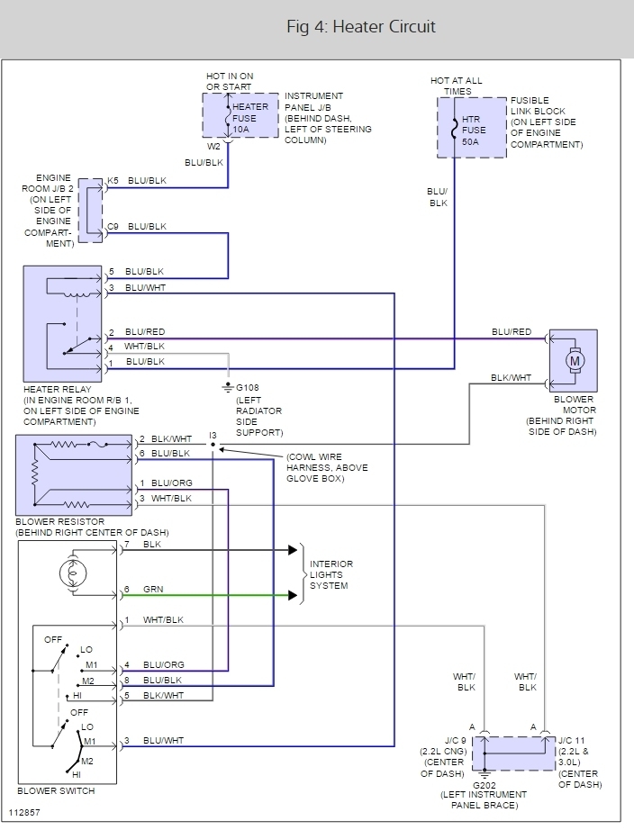 The heater kicks off and on when I step on the brake it seems to come on, but then sometimes when you got the switch on and everything is working it seems to be working the heater will just kick off. Sometimes the tail lights do not work. I am trying to track down the wiring problem.