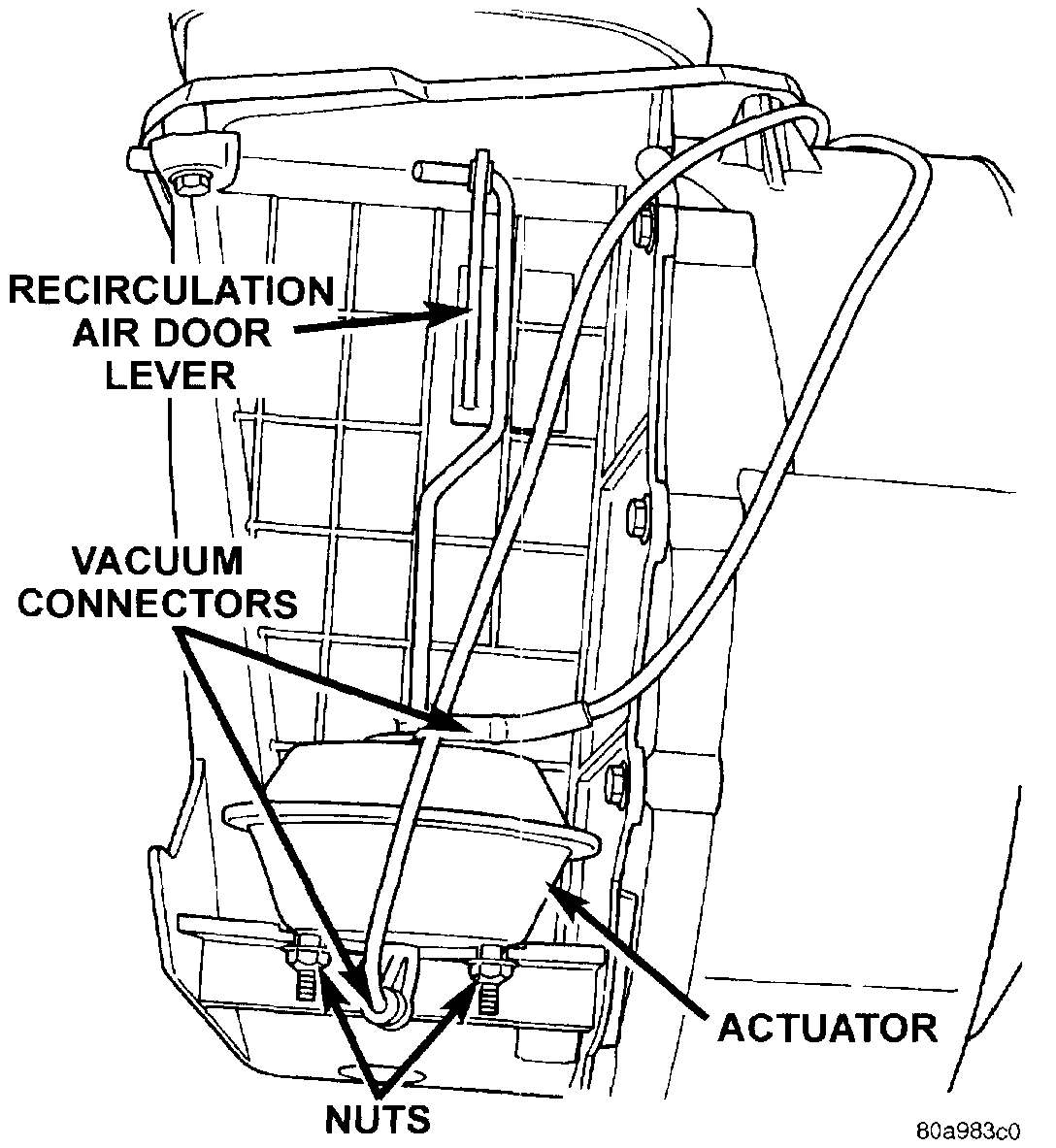 Yes, it is a vacuum leak. The engine vacuum is supplied to the controller on the dash. When you load the engine, the vacuum in the engine drops, so if there is a leak, the mode actuator can't select where air flow should go.