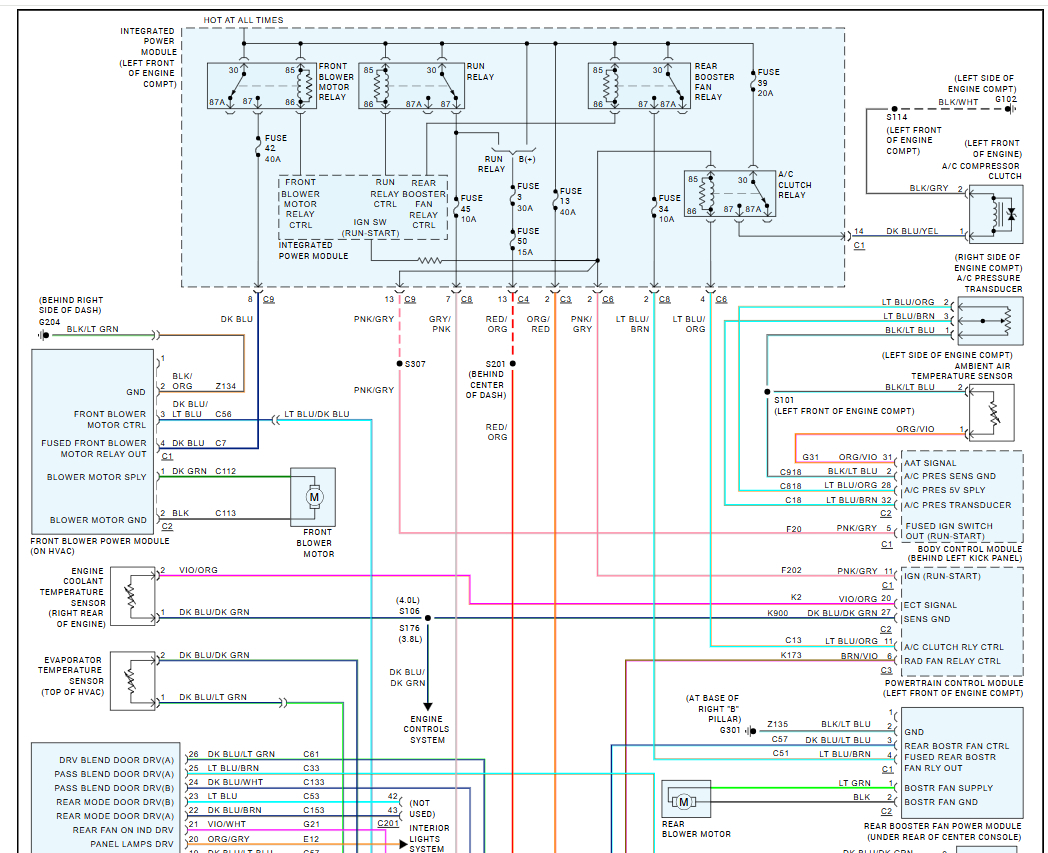 It sounds like the IPM has gone out (integrated power module) to be sure here is the wiring diagrams for the system, I would check for power at the Dr/Blu wire going to the front blower control module with the system on high fan speed and if not power is present I would replace the IPM which is a common problem with these cars. Here is a guide so you can check for power, and I have included how to change out the IPM as well which is easy because it-self learns so there is no programming.