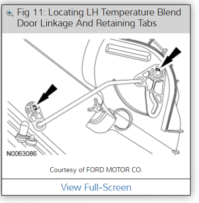 5. Manually operate, and inspect the LH temperature blend door linkage for incorrect placement, binding or damage.