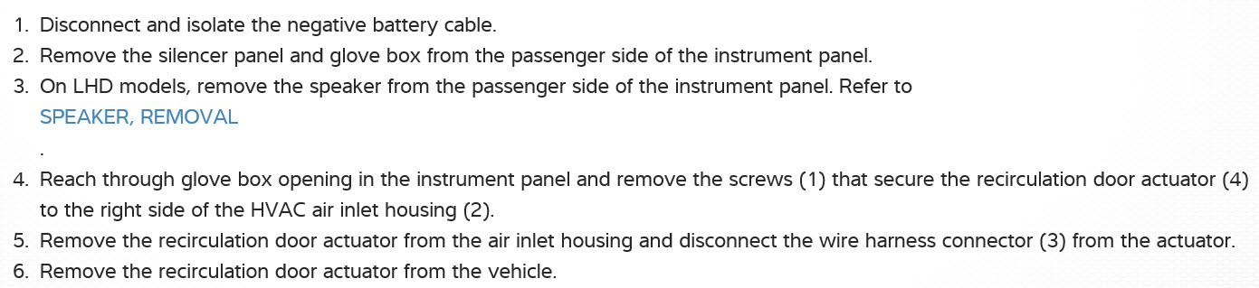 I need to know how to get to this actuator motor to replace it. Heater blend actuator fresh air to recycled.
