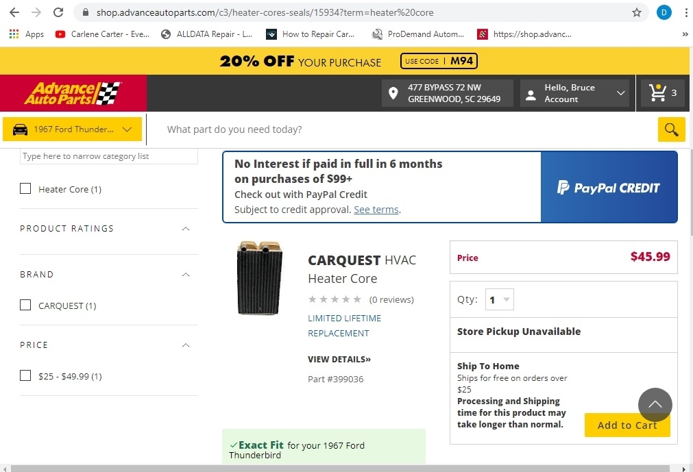 There were others shown in my You Tube search "1967 Ford Thunderbird heater core replacement".