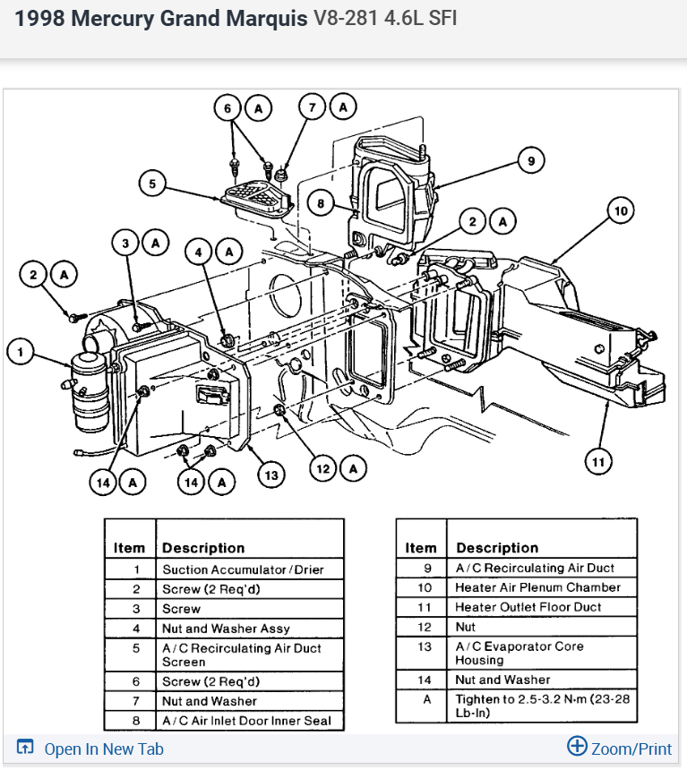 12. Fill the cooling system with coolant to replace coolant lost during removal of the heater air plenum chamber.