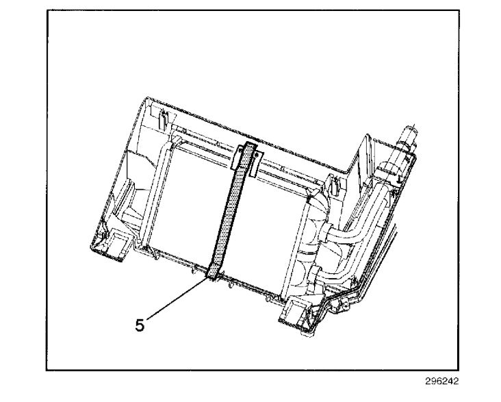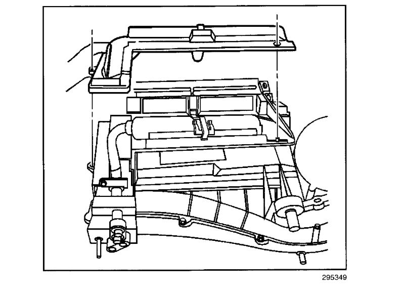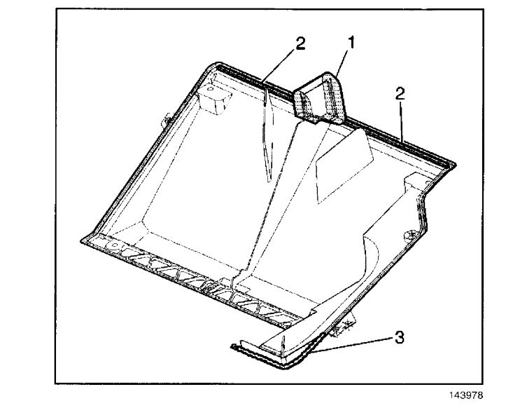 13. Remove and discard the seals (1, 2) from the heater core cover.