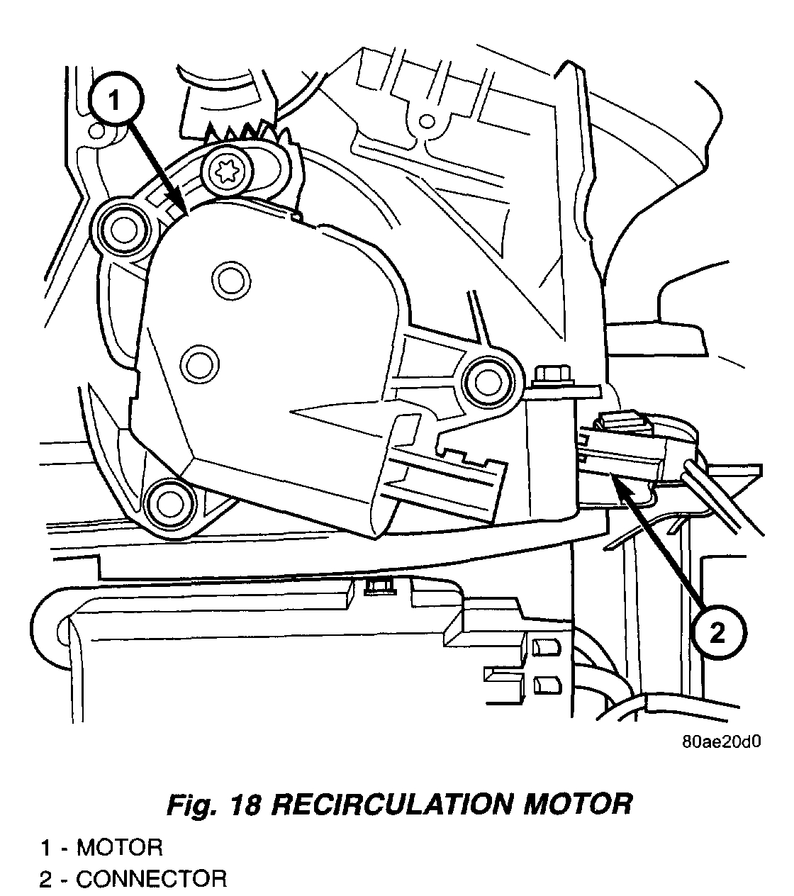 NOTE: Prior to part replacement, re-calibration the HVAC actuator. Disconnecting negative battery cable for 60 seconds. This will automatically initiate the software calibration procedure.
