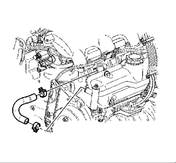 Remove the thermostat bypass pipe hose and clamp from the thermostat bypass pipe.