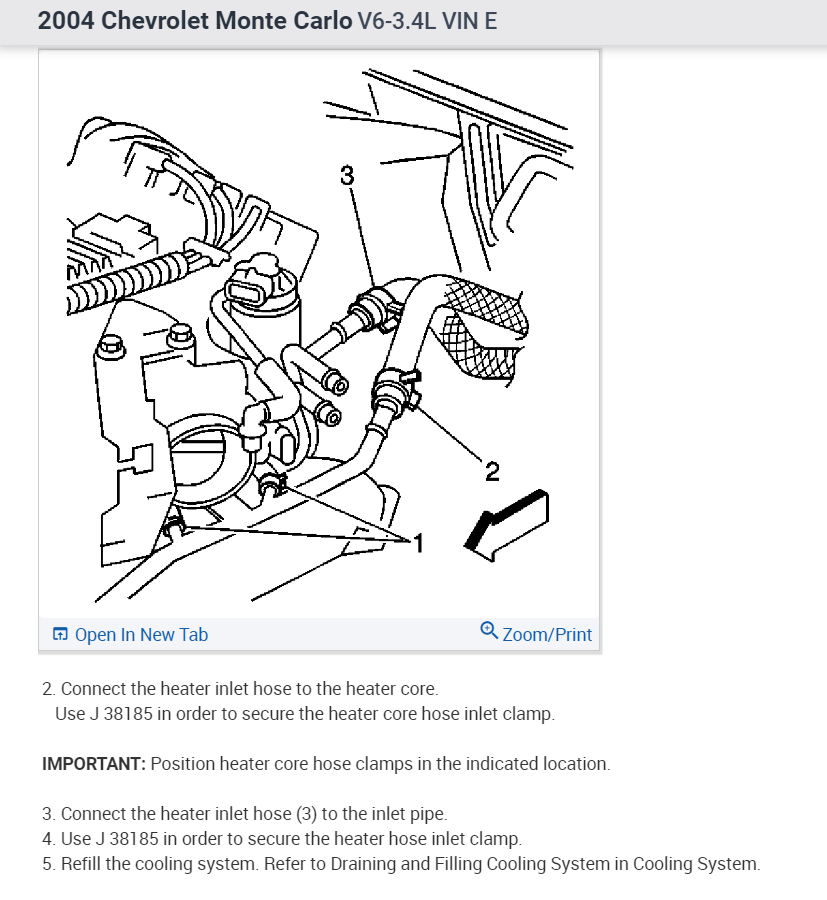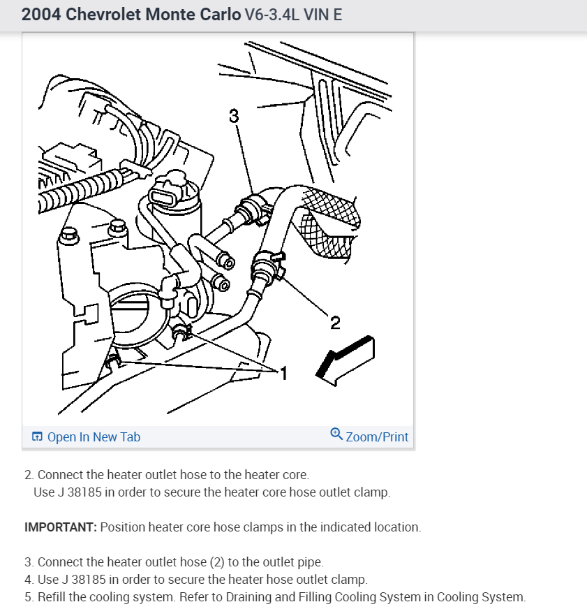 Here is a guide to help walk you through the steps of changing the heater hoses out with the instructions with the inlet and hose outlet information you have requested in the images below.