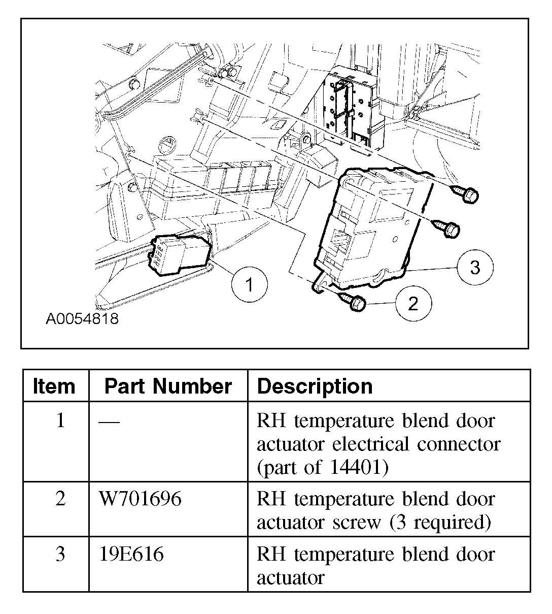 3. Disconnect the RH temperature blend door actuator electrical connector.