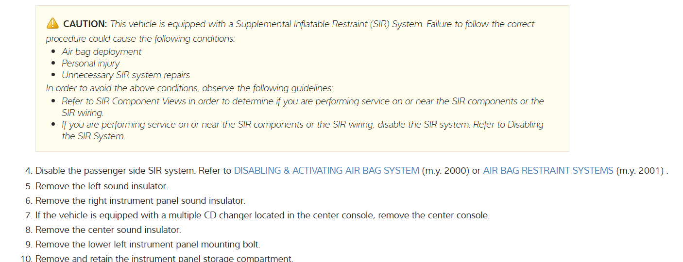 CAUTION: Refer to SIR Handling Caution in Cautions and Notices.