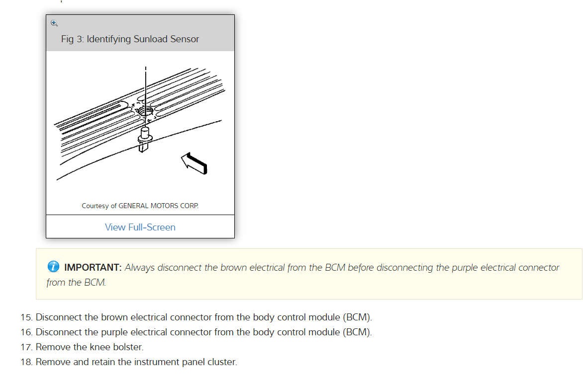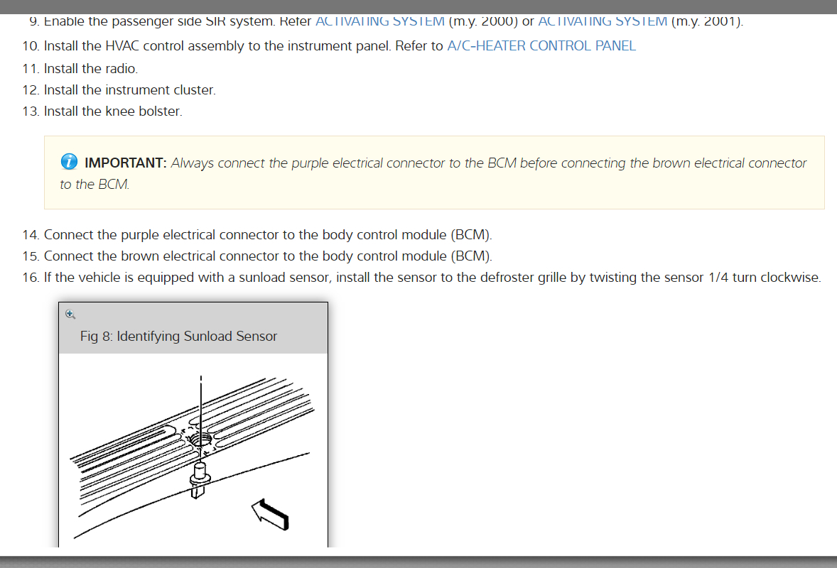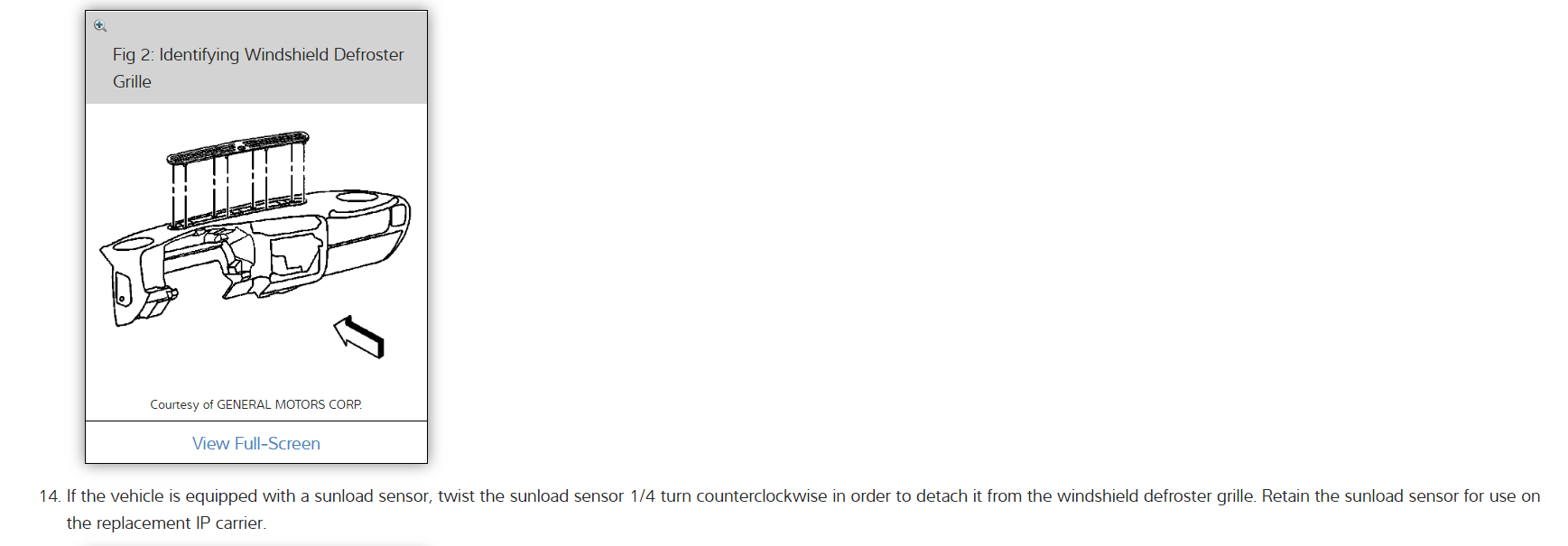 13. If equipped with a sun load temperature sensor twist the sensor 1/4 turn counterclockwise in order to disengage.