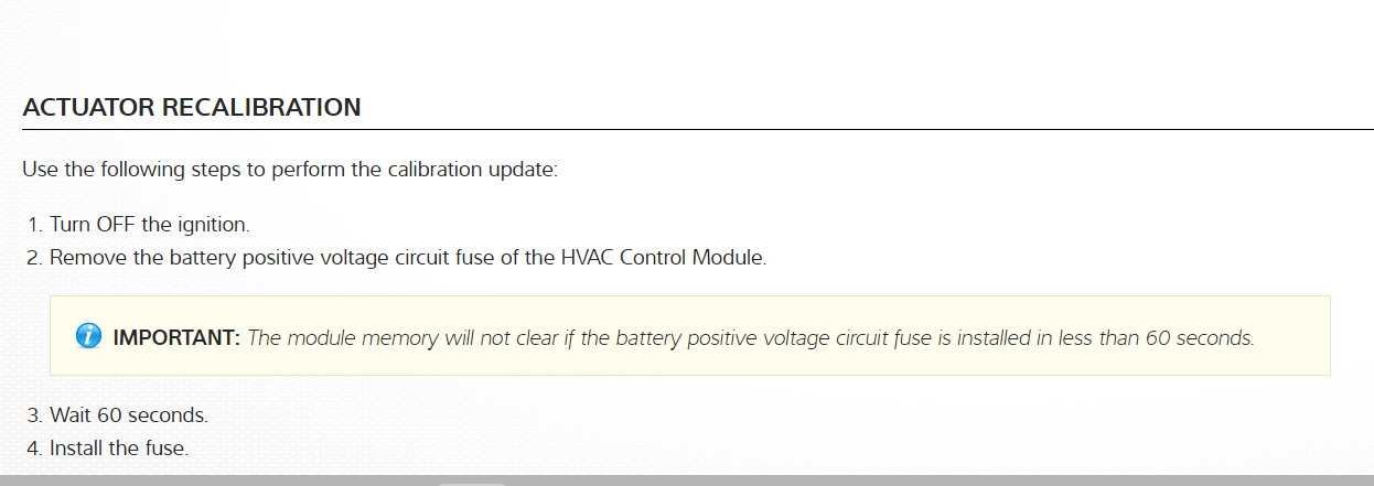 29. Calibrate the HVAC module actuator. Refer to Re-Calibrating Actuators in HVAC Systems - Automatic.