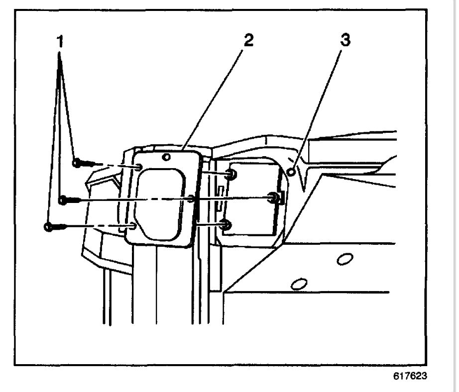 4. On vehicles with automatic climate control only, remove the service access cover mounting screws (1).