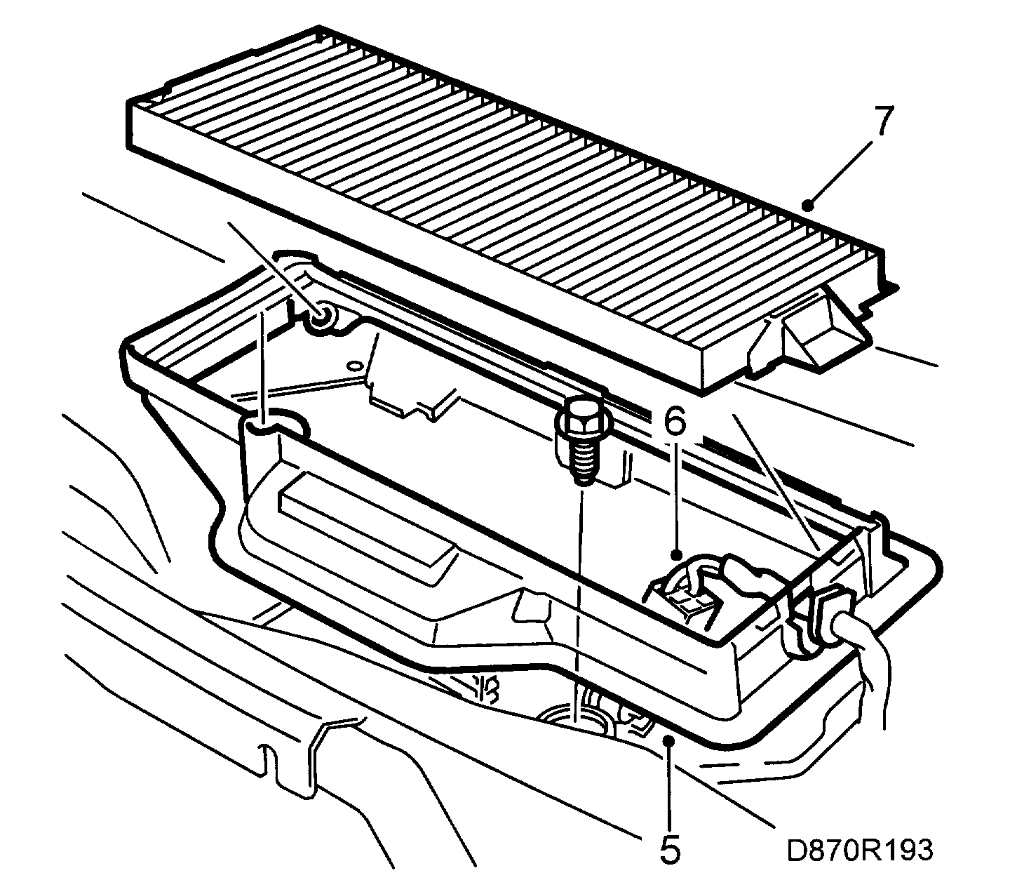 5. Refit the ventilation filter frame and tighten the four retaining bolts.