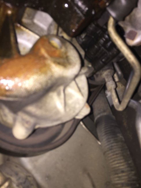 Where the heater return line connects to the back of the water pump housing, the tubing that is pressed into the housing is broken.