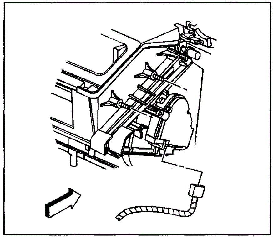 Under the dash on the passenger side, locate the actuator. See if anything is loose at the connection or if there is any evident damage to the wiring or connector pins.