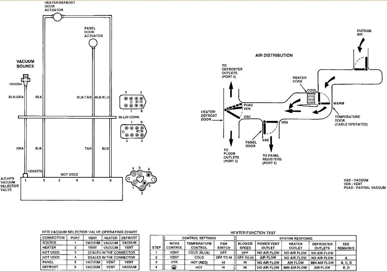 There are no heater hoses under the dash, did you mean the vacuum control lines for the HVAC system perhaps. Attached is a diagram for those as well as how the system operates.