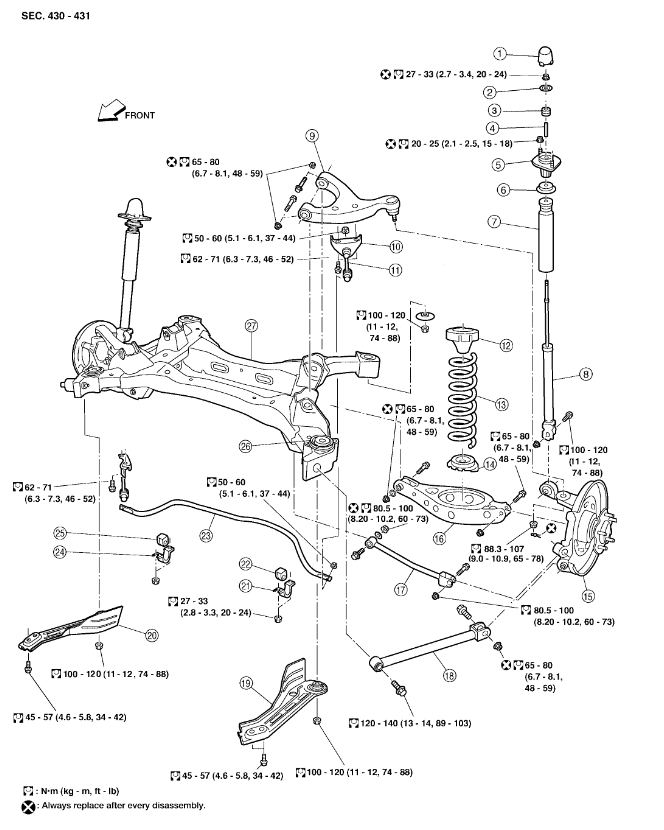 Sure, here are the torque specs for the rear suspension. Check out the images (below). Let us know if you need anything else.