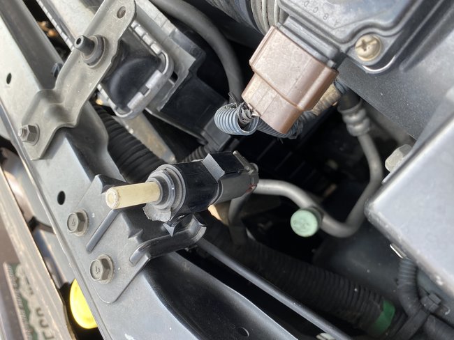 Sorry for the delay. They did attach and that solves it. That is the hood ajar switch. Basically when you close the hood it pushes down on that white plunger and it closes the switch and tells the control module that the hood is closed. When it is extended it tells it that it is open.