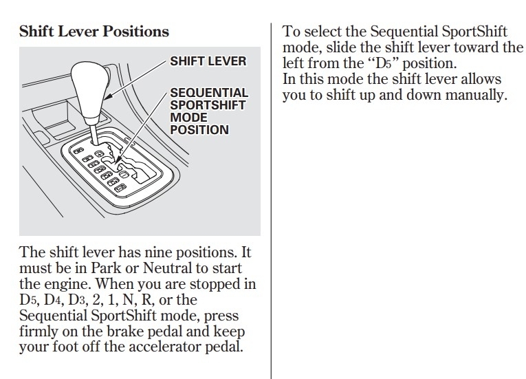 Take a look at the image and it explains the way to select the sport shift option. However, that transmission has a very bad reputation for failures. There was a lawsuit extending the warranty to 109,000 miles but even the replacement units tend to fail and lock up so I'm not sure I would want to drive it in any sort of aggressive manner.