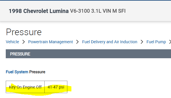 Also, fuel pressure should be between 41 and 47 with the key on and the engine off. It almost sounds like something is plugged after the fuel pressure regulator. See pic below. After the fuel reaches the fuel rail, unused fuel is returned to the fuel tank by a separate pipe. The return is attached to the fuel pressure regulator. That is where I am suspecting a possible issue. Something is blocking the return.