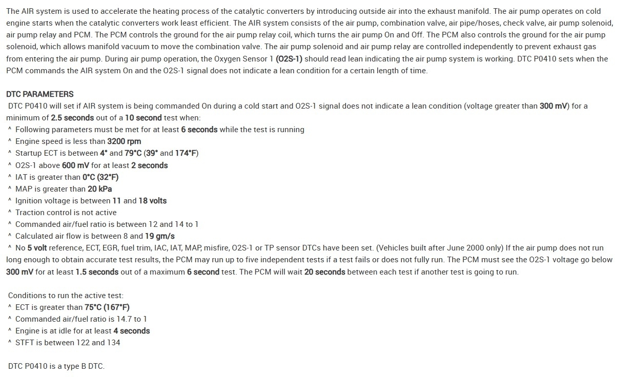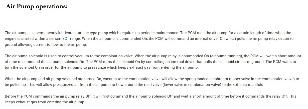 Something else that just came to mind, is the Air Injection system pumps air into the exhaust during cold start up, but the EGR also allows exhaust gases back into the intake manifold under heavy engine loads to lower cylinder temps, so if you think about it, we could have a case here where the Air pump is pushing air into the exhaust and this being an electronic EGR valve, might be just allowing that air right back into the intake manifold.