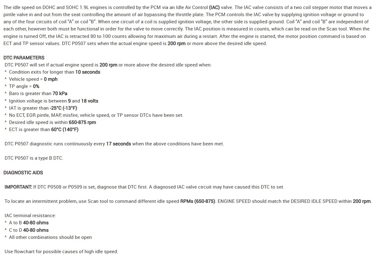 And the p0507 high idle speed.
