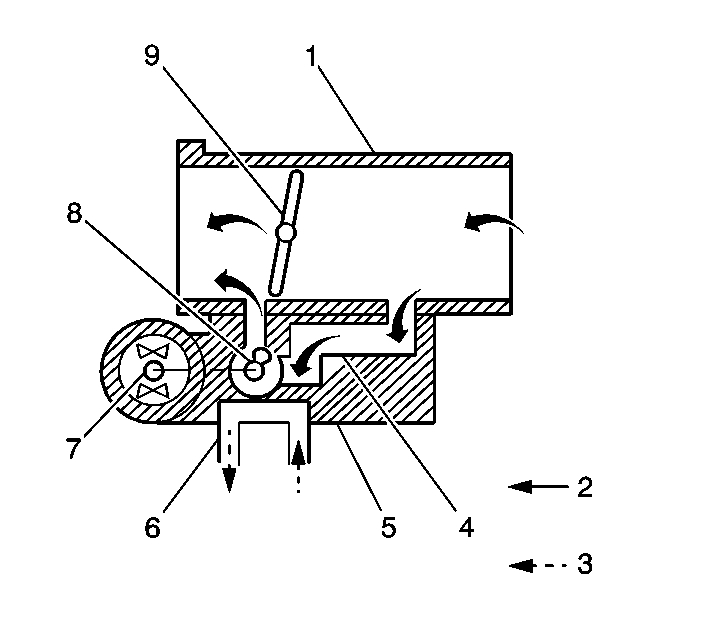The MAF sensor is a hot-wire design. A platinum hot-wire (2) and a thermistor (3) are located in the intake air bypass passage of the MAF sensor housing. The temperature of the platinum hot-wire is affected by exposure to air flow and by exposure to air temperature. The platinum hot-wire is maintained at a set temperature by controlling the current flow through the wire. The MAF sensor converts the changes in current flow to a voltage signal. The voltage signal from the MAF sensor enables the PCM to detect changes in the air density and changes in air volume.