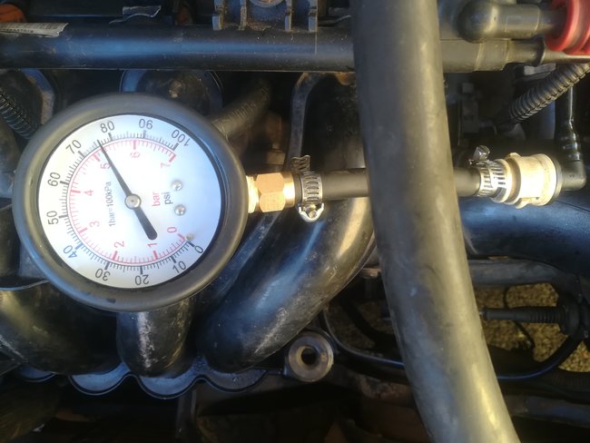 I did a fuel pressure test and at idle the fuel pressure is approximately 2.3 bar. The Bantam specification says that the fuel pump is three bars, unsure if the 0.7 bar would cause the exhaust to turn red / orange and also cause the idle to remain consistent at 1,300 RPMs.