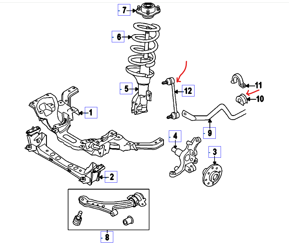 My car is lowered with Eibach Sportline lowering spring for over 5 years now. I have a high-pitched metal on metal tinging sound coming from the front end of my mustang when i hit a rut in the road which I haven't had previously. I recently replaced the front sway bar bushings with prothane aftermarket bushing as well as new sway bar end links to see if that solved my issue. It did not. My friends think it could be a ball joint or strut/strut mount. What do you think it could be? I'm very frustrated and don't want to throw the parts cannon at it. Thanks