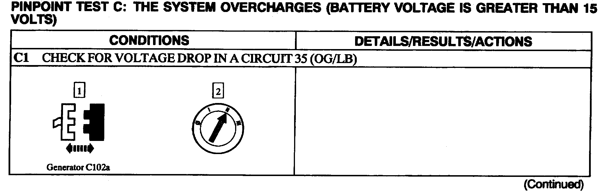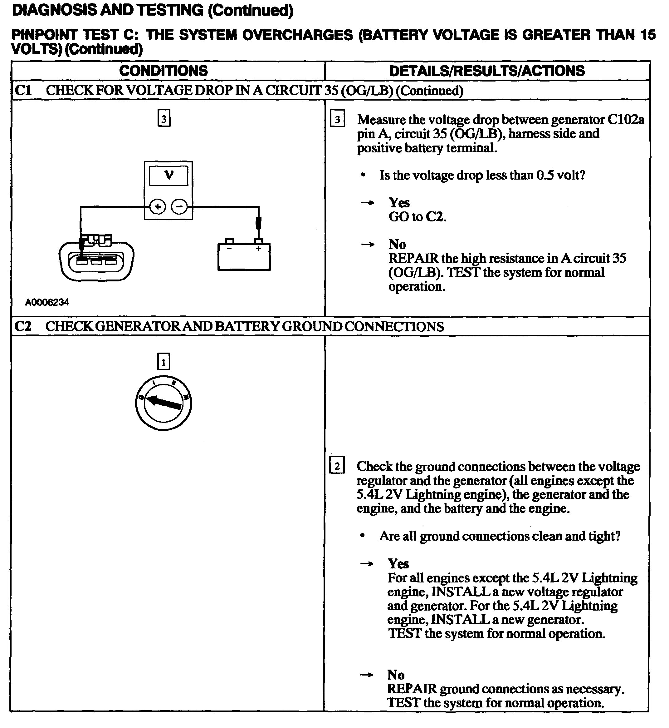 Vehicle Starting and Charging Charging System Testing and Inspection Pinpoint Tests Pinpoint Tests Test C: System Overcharges (Voltage Greater Than 15 Volts)