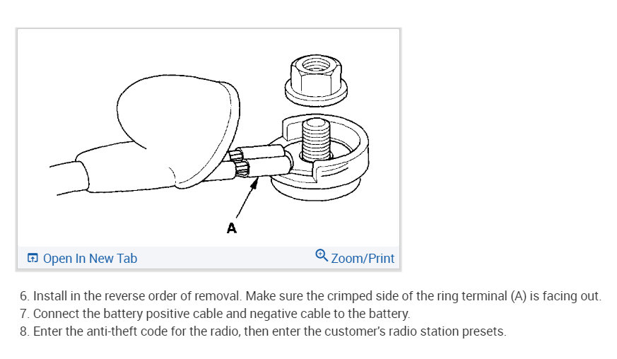 When installing the heavy gauge starter cable, make sure the crimped side of the terminal end is facing out.