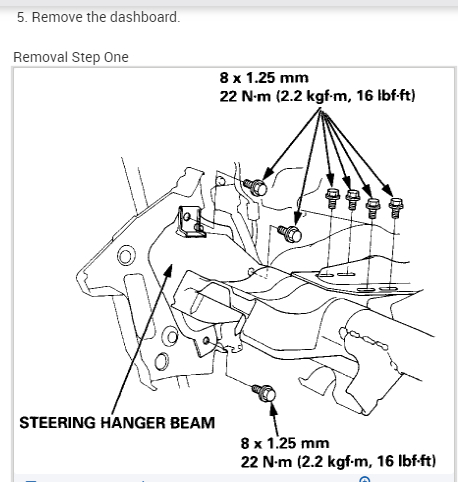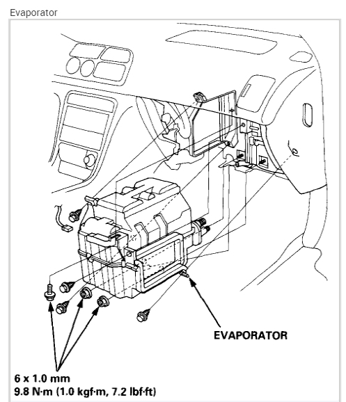 5. Remove the glove box and its frame by removing the 5 screws and 1 bolt.