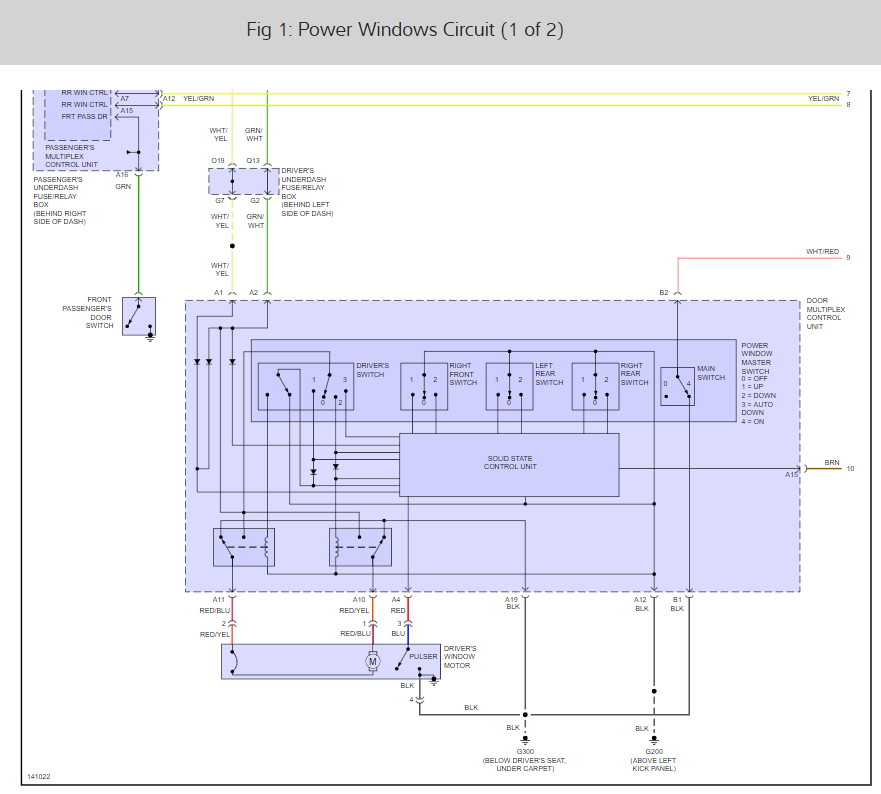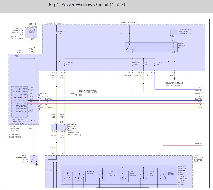 Then I needed to replace the battery, and since replacing it, now only the driver's door power window goes up/down, whether using driver's control or individual door control switch.