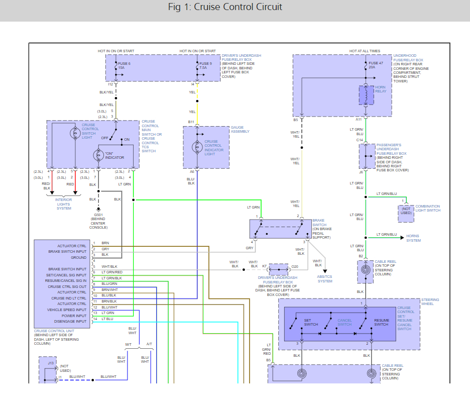 The light on the cruise control on/off switch to the left of the steering wheel does not come on when the button is pressed. And cruise control won't come on. This happened once before. The switch module was replaced and all was well again. (1) How do I pop the switch out of the dash to replace it, and (2) is the switch wired through the light/lamp such that if the light burns out, the switch won't go on, (3) if the lamp is in the circuit, can I find a wiring diagram or find what to short such that cruise is always on?