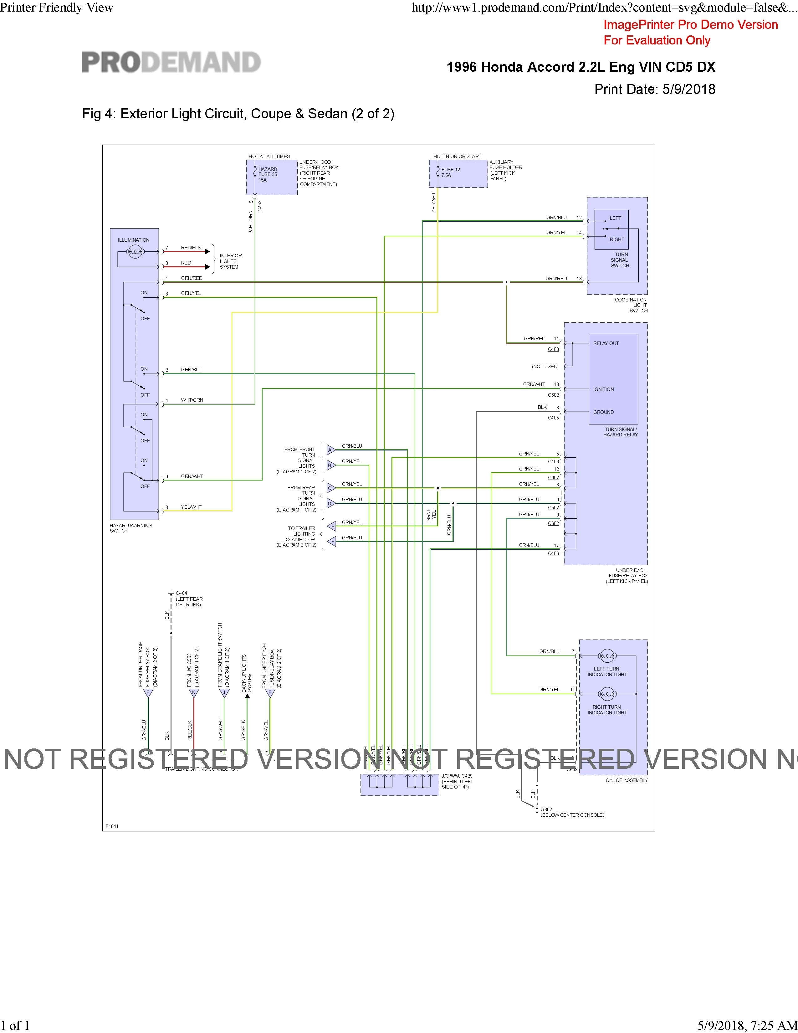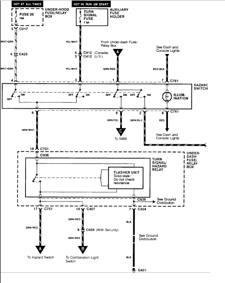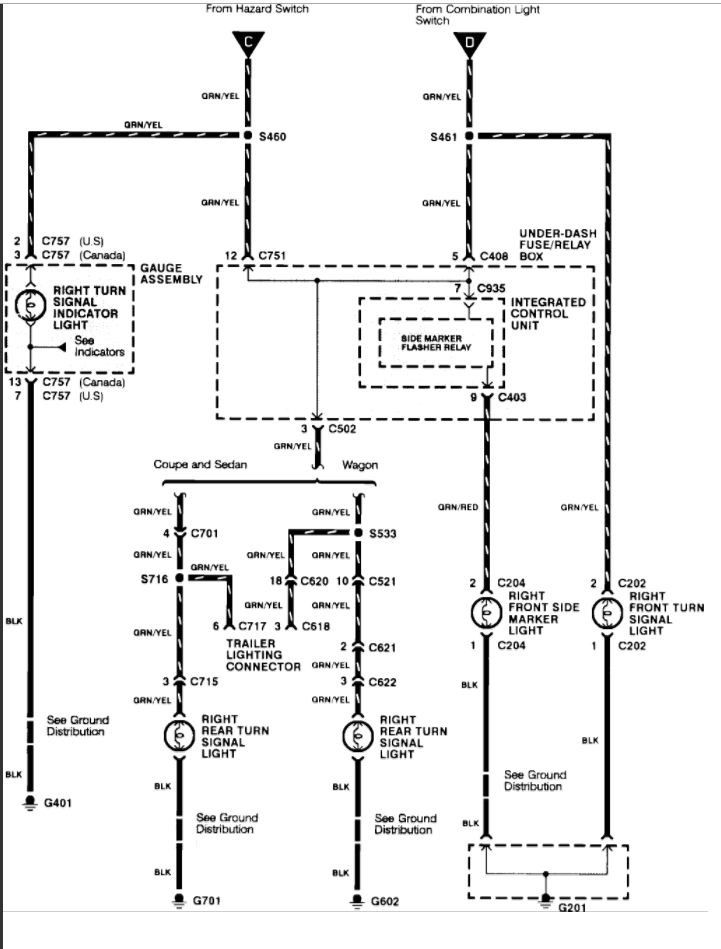 Dirty/Corroded innards of my hazard switch made my 1994 Accord Wagon have no turn signals. Took the hazard switch apart, cleaned and back together. A little bad news in that I killed the "switcher" mechanism in my Hazards; they work but I have to hold it to keep it on! I'll get a new one soon, but at least the signals work in the meantime.