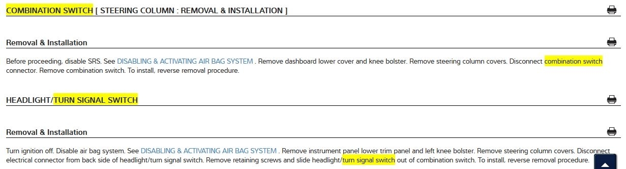 (Original Symptom: right and left turn signal didn't work and the flasher relay BUZZED really loudly. Like a 1960s VW horn. I replaced the flasher relay and the new one didn't work either and made a rapid clicky noise, twice as fast as a "hyper-flash" that LED bulbs will cause. Other symptom that the bad hazard switch will give is your turn signals will trigger even without a key in the ignition: hazards are always Hot Voltage but turn signals *should* require key.)