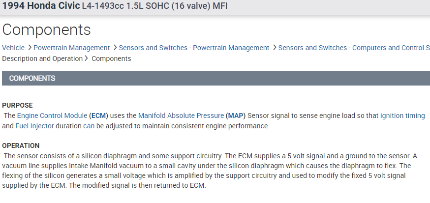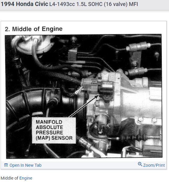 I need to know where the map sensor location for a 1994 Honda civic ex