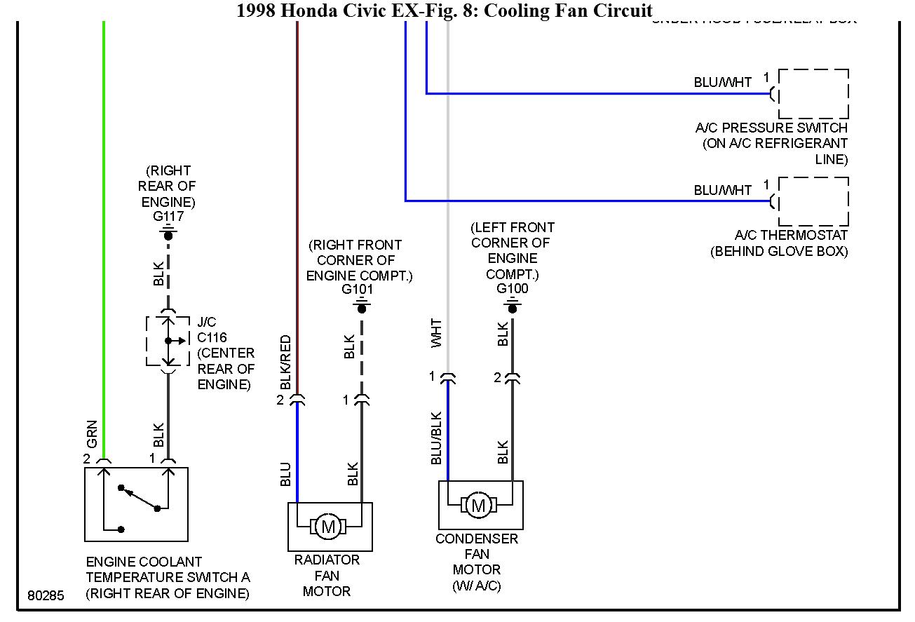 If the part is a temperature sensor, it is going to provide a voltage signal to the computer. The computer will turn on the fan relay when a certain voltage is reached. That type of sensor is monitored, and when you unplug it, the computer won't know engine temperature so it will turn on the fan just in case the engine is overheating.
