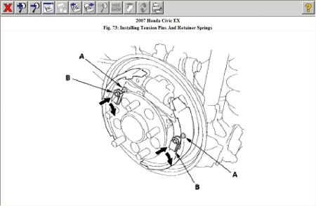 NOTE: Make sure the brake shoes positioning on the brake shoe bosses of the backing plate, and fitting the top of the brake shoes onto the wheel cylinder pistons.