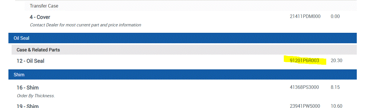 That is the transfer input shaft housing O-ring. I looked and found what I believe is the correct part number. To the best of my knowledge, it is 91301-PH8-005. You can get them on Amazon and other places.